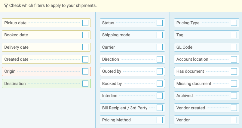 Enhanced Shipment Filters: More powerful ways to sort and find shipments.