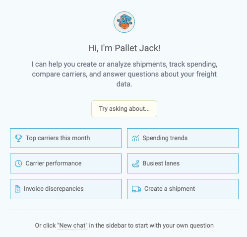 Pallet Jack: Your AI-powered assistant for analyzing, researching, quoting and booking shipments. PJ reduces manual work and surfaces insights you’d normally have to create reporting for.