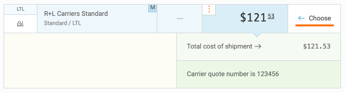 Next, fill in a rate, quote #, and/or transit time & click Save Rate. It will now appear on your Rates results list. From here you can click Choose to continue booking.