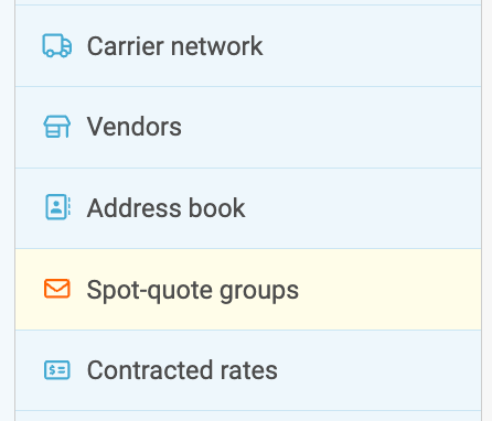 Users with access will be able to add, edit, and remove which carrier emails to include on Spot quotes. Creating a list of your Carrier Contacts is easy. Click into your Settings -> Spot quote groups.