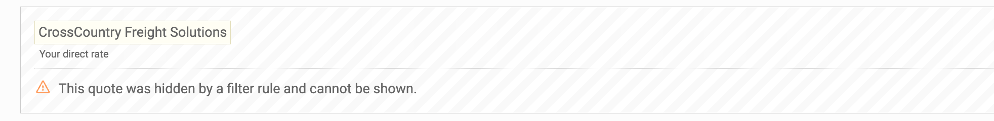 When a quote with filtered mapping is requested, instead of a rate, you’ll see a message indicating that the result was filtered out.