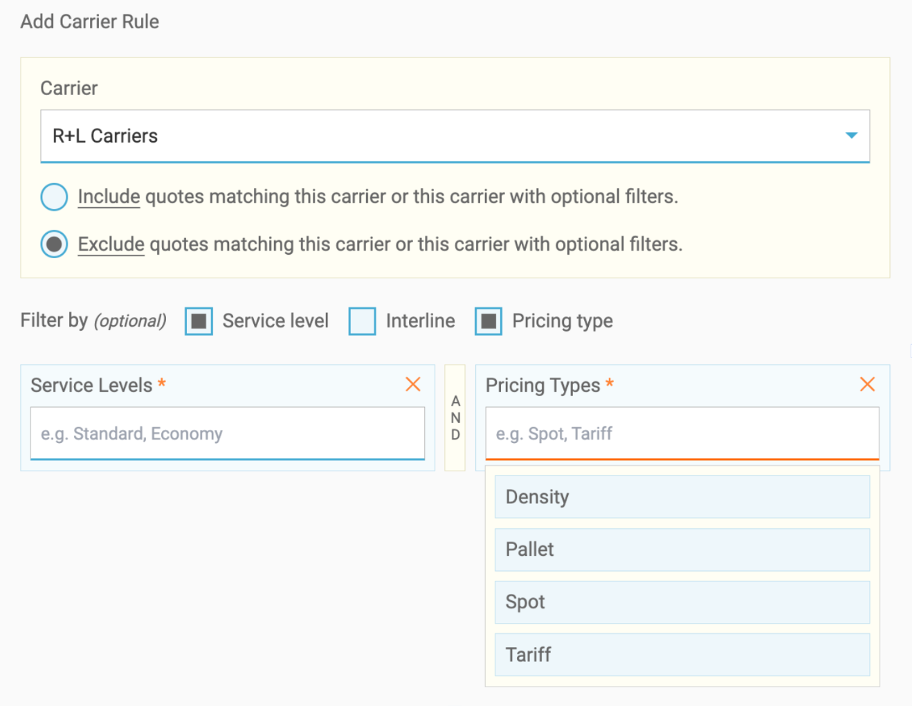 Click + Add Carrier Rule to define results by LTL and/or Parcel carrier.
