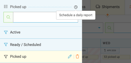 Filter your freight and request scheduled reports via your Shipments Tab. This article covers how to use custom filters to create Saved Views, which can be utilized to request scheduled reports.